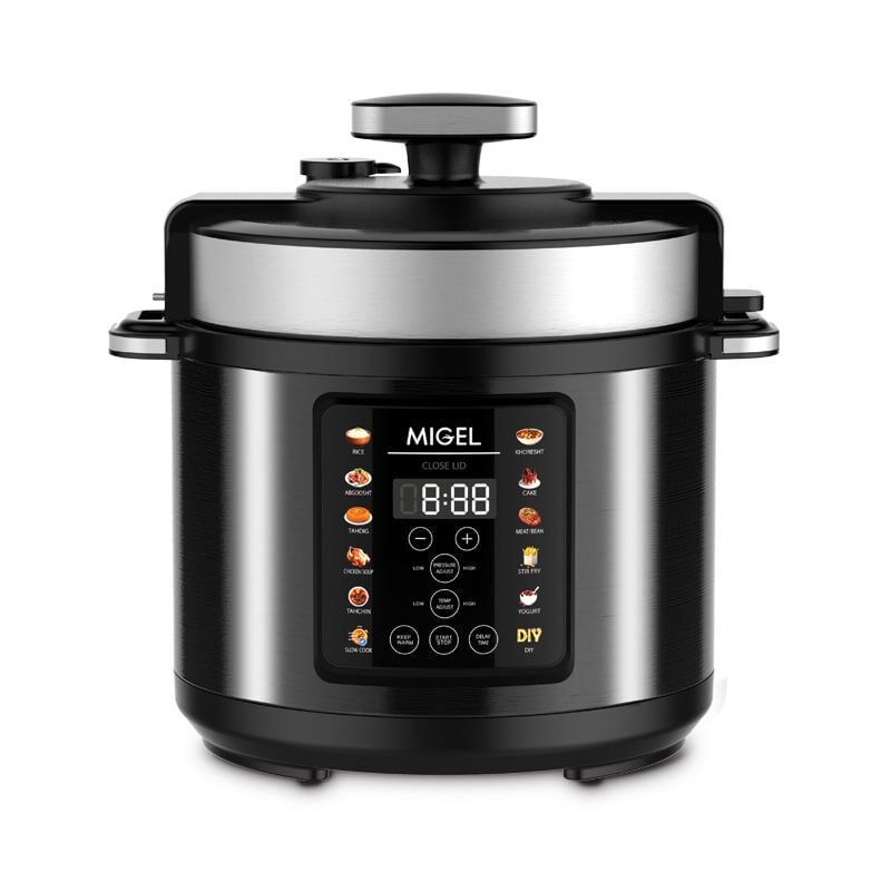 بر روی بدنه زودپز برقی 6 لیتری میگل مدل GPC 600 پنل دیجیتالی تعبیه گردیده که با انتخاب هر کدام از آنها می توان طبخ مورد نظر را آغاز نمود.