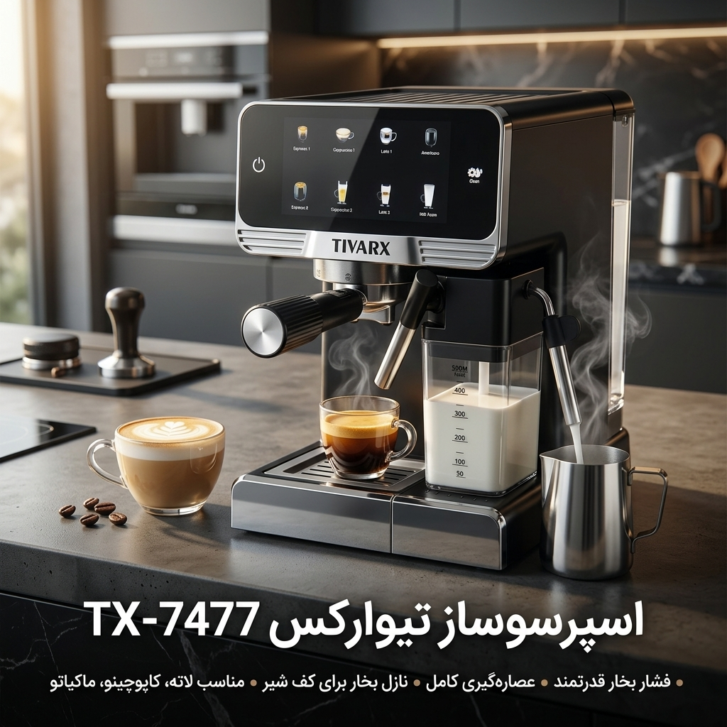 اگر قصد خرید یک اسپرسوساز خانگی با قیمت مناسب و عملکرد حرفهای را دارید، اسپرسوساز تیوارکس مدل TX‑7477 یکی از گزینههای ارزشمند بازار محسوب میشود.