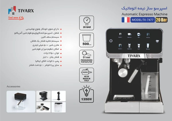 ویژگیهای اسپرسوساز Tivarx مدل TX‑7477