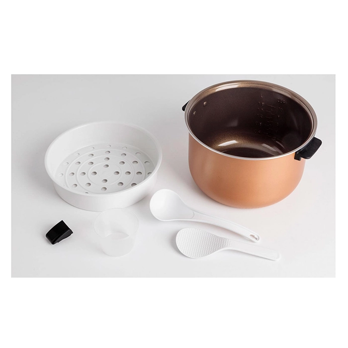 از دیگر نکات باید اشاره کرد که ابعاد پلوپز فکر مدل Guvech برابر با 42 × 33 × 27 سانتی متر می باشد که اندازهای استانداردی برخوردار می باشد و به راحتی می توانید آن را در محیط خود جایی دهید. همچنین باید گفت که وزن این محصول 3.80 کیلوگرم می باشد که به نسبت از وزن پایینی برخوردار می باشد و به راحتی جابجا می شود. ظرفیت کاسه این محصول 5 لیتر می باشد که شما می توانید حجم قابل توجهی از غذا را در آن بپزید. از دیگر نکات می توان به پنل LCD که در جلوی دستگاه وجود دارد اشاره کرد که علاوه بر ظاهر شیکی که به محصول بخشیده است توانسته کارایی و کاربرد این محصول را نیز بالا ببرد.